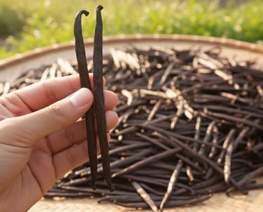 Premium vanilla Gourmet Grade beans from Sulawesi farms.